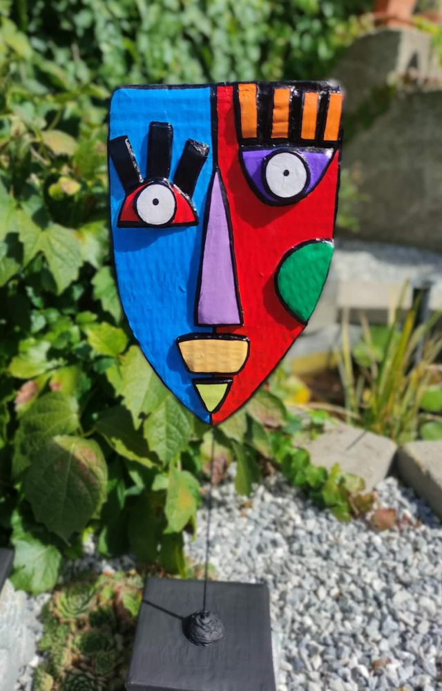 S'inspirant du cubisme et tout particulièrement de l'oeuvre de Picasso, formes et contours abstraits. Ces masques décoratifs révèlent une silhouette en carton et papier mâché peinte à la main et se distinguent par une esthétique unique et colorée. De quoi introduire une touche artistique des plus ludiques au sein de votre intérieur. chaque pièce est réalisé sur Précommande.